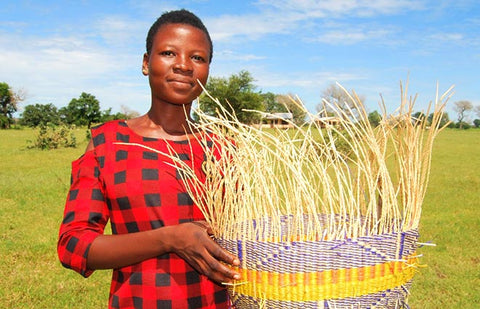 We work closely with our sister organization, AYÉYA, to deliver handwoven baskets are from co-ops in West Africa. Each basket is personally signed by the weaver. The weavers receive upfront fair-trade wages. Alaffia’s work in these communities has helped provide potable water for weavers in Sumbrungu Atampure and Shirigu, near Bolgatanga.